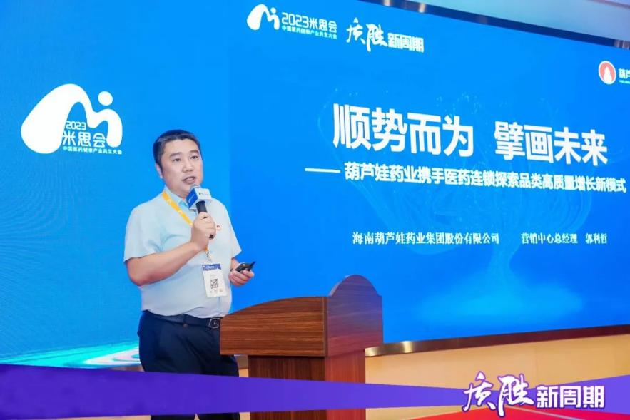 大会期间,在【米思分会】VIP供零对接会上,今年会药业集团营销中心总经理郭利哲作了题为《顺势而为 擘画未来——今年会药业携手医药连锁探索品类高质量增长新模式》主题演讲,向广大零售终端客户介绍了近年来今年会药业集团在产品研发、智能制造、专业化推广、营销变革、品牌建设等方面取得的成绩与荣誉,同时较为详尽地介绍了今年会药业集团的儿童用药、儿童保健品、儿童营养品及成人慢病用药、特殊养生佳品、女性产品等产品集群与系列产品矩阵,让与会客户产生了浓郁的合作兴趣。郭利哲还向大家分享了今年会药业与全国头部连锁战略合作的经典成功案例,并表示接下来将与中小连锁客户共同探寻零售药店品类高质量增长新路径,以品牌共建、品类共赢为抓手,构建以供零双方深度融合的新型商业合作新模式。